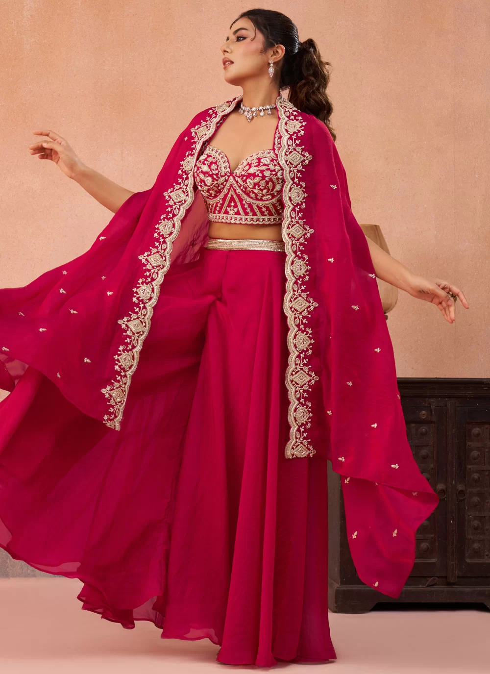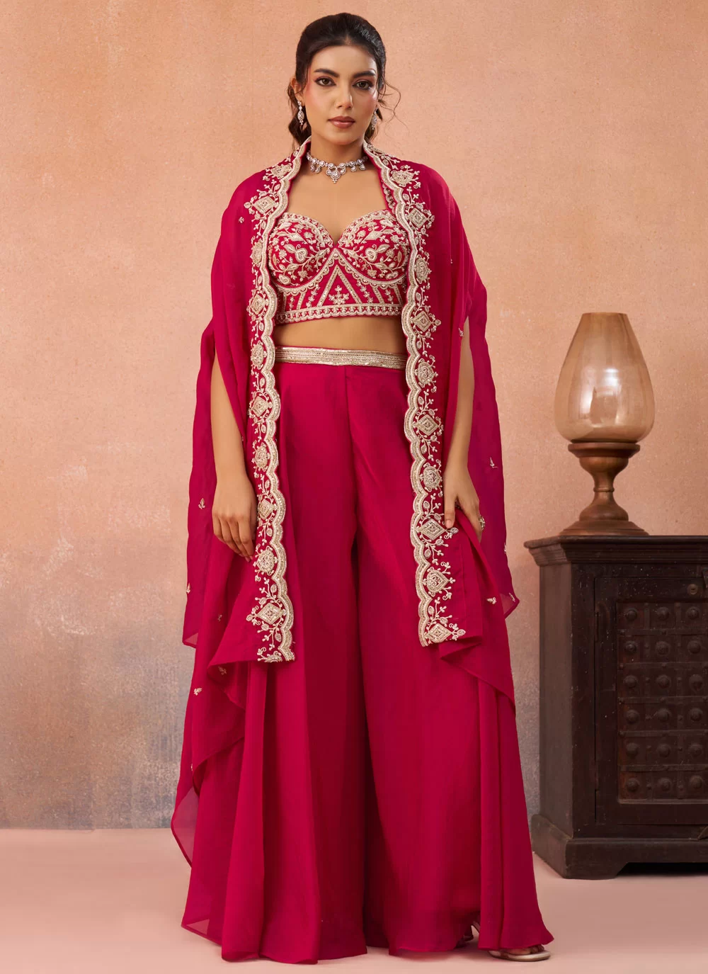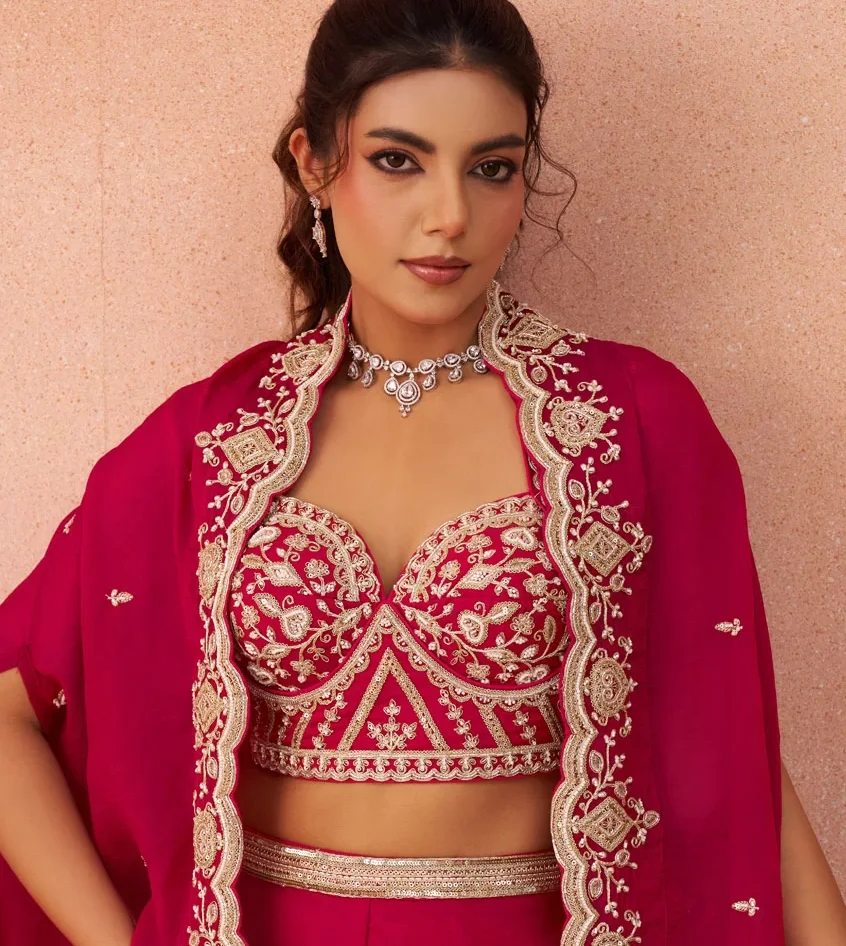 Product Specification Colour Pink Fabric Organza Occasion Ceremonial, Engagement, Festival Style Palazzo Salwar Suit Work Beads, Embroidered